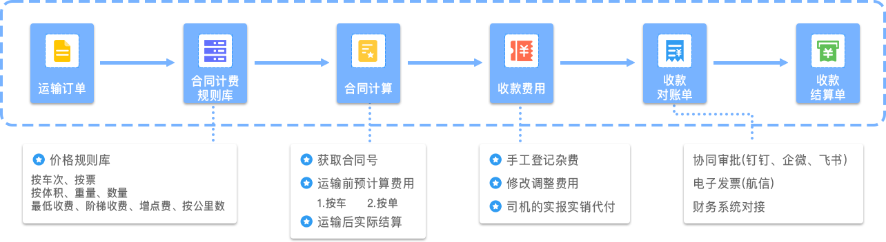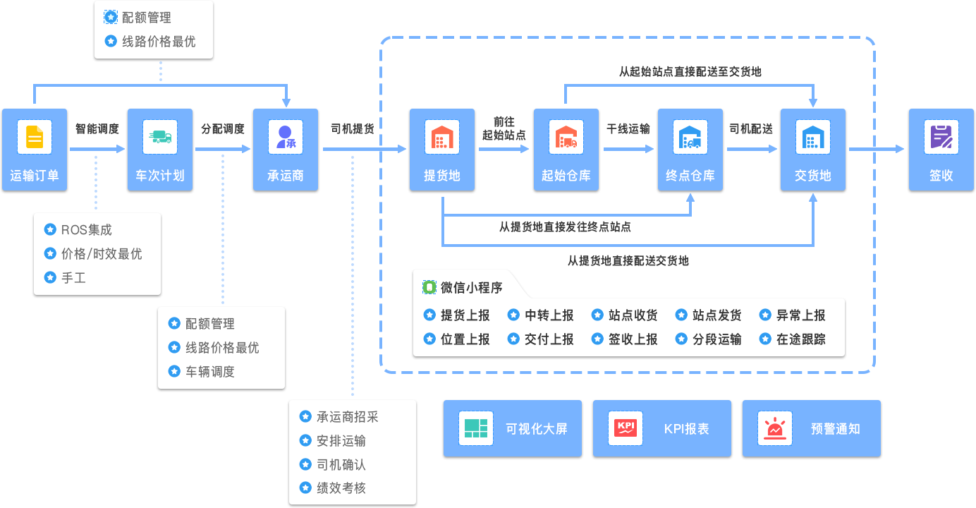 获取任务、填报运力、装货、卸货、运输地点上报、运输异常事件、签单拍照上传、运费结算