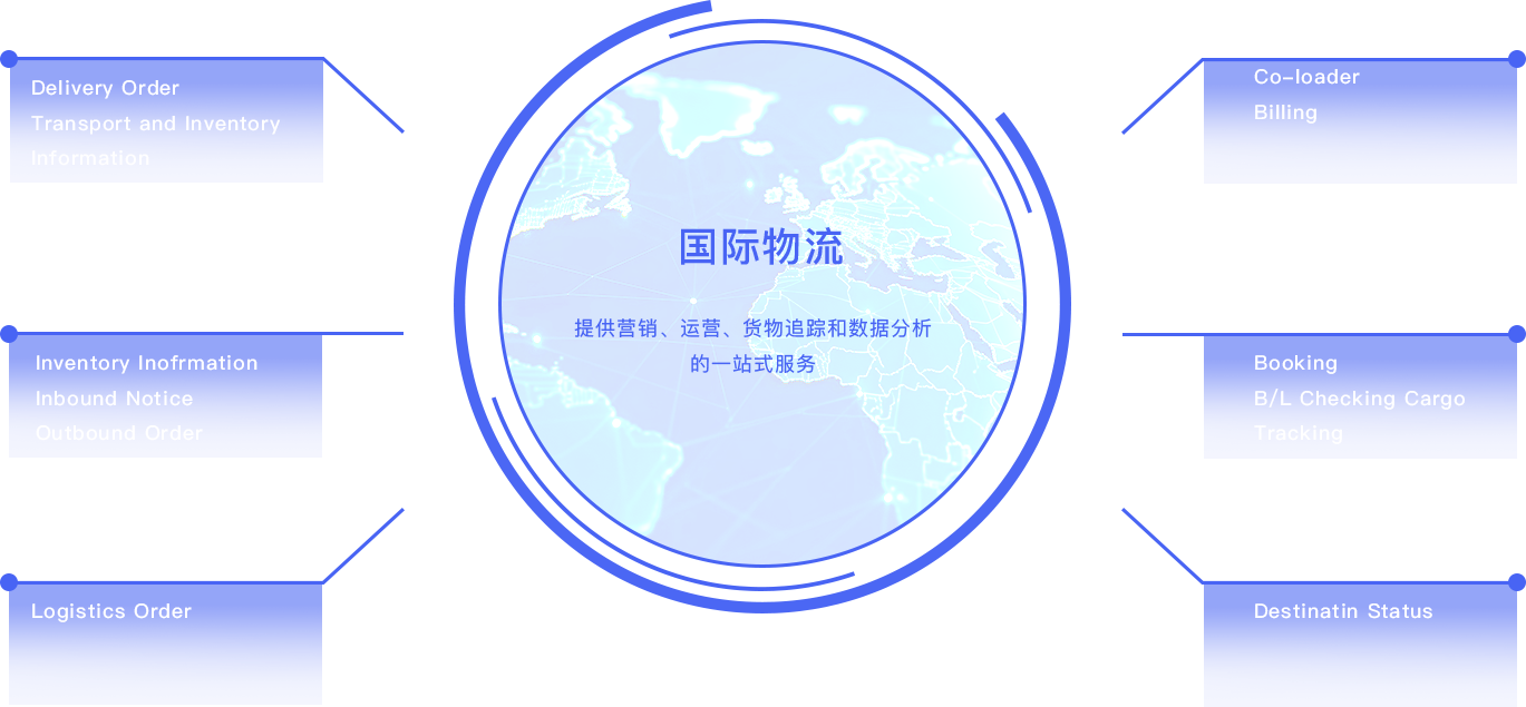 与主要的船公司/船代建立的订舱申请、确认订舱、补料、放箱等数据对接服务。